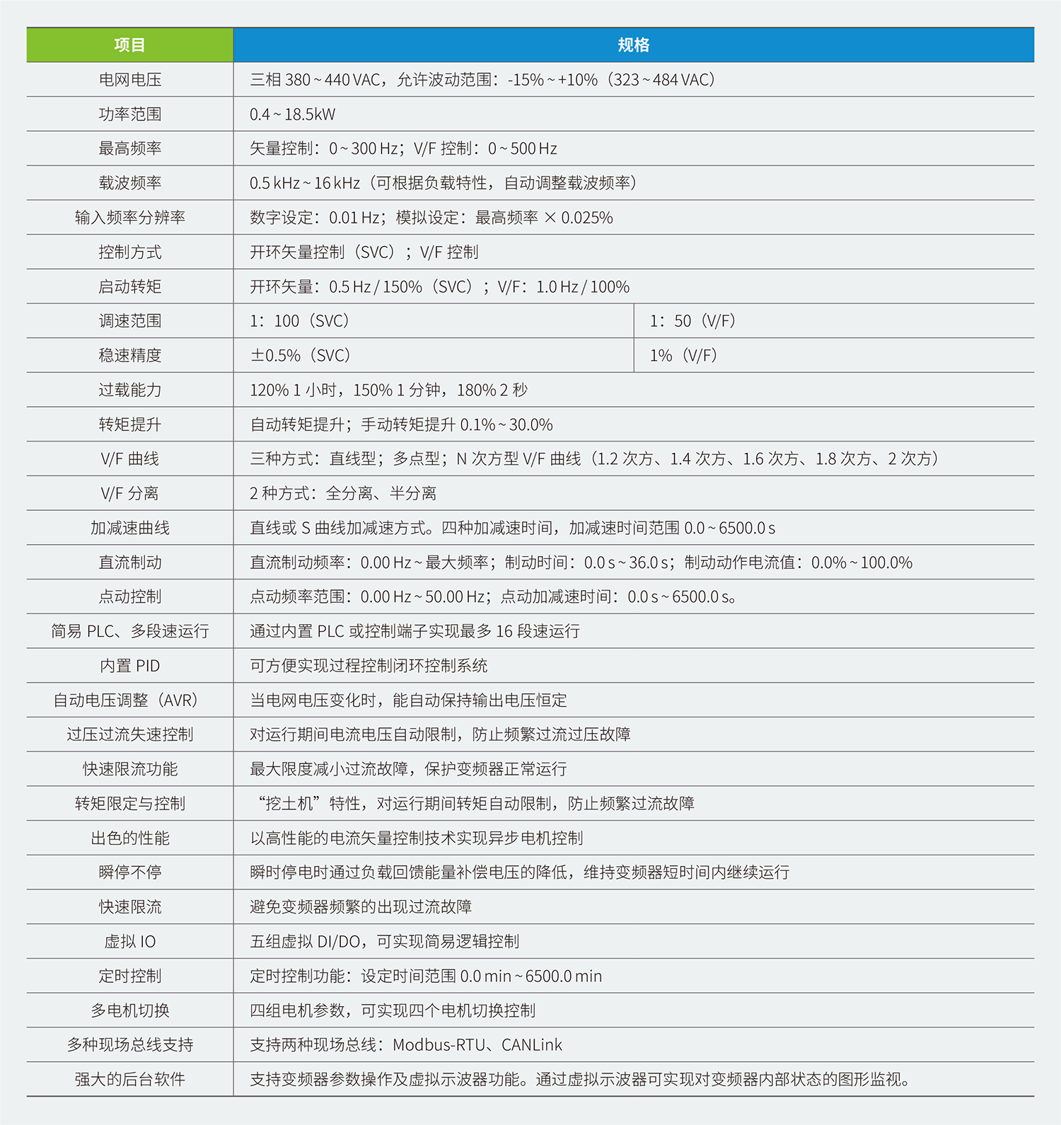 7、標(biāo)配 RS485 通訊接口,支持 Modbus RTU 通訊,可擴(kuò)展 CANLink,實(shí)現(xiàn)與匯川產(chǎn)品的快速總線聯(lián)接