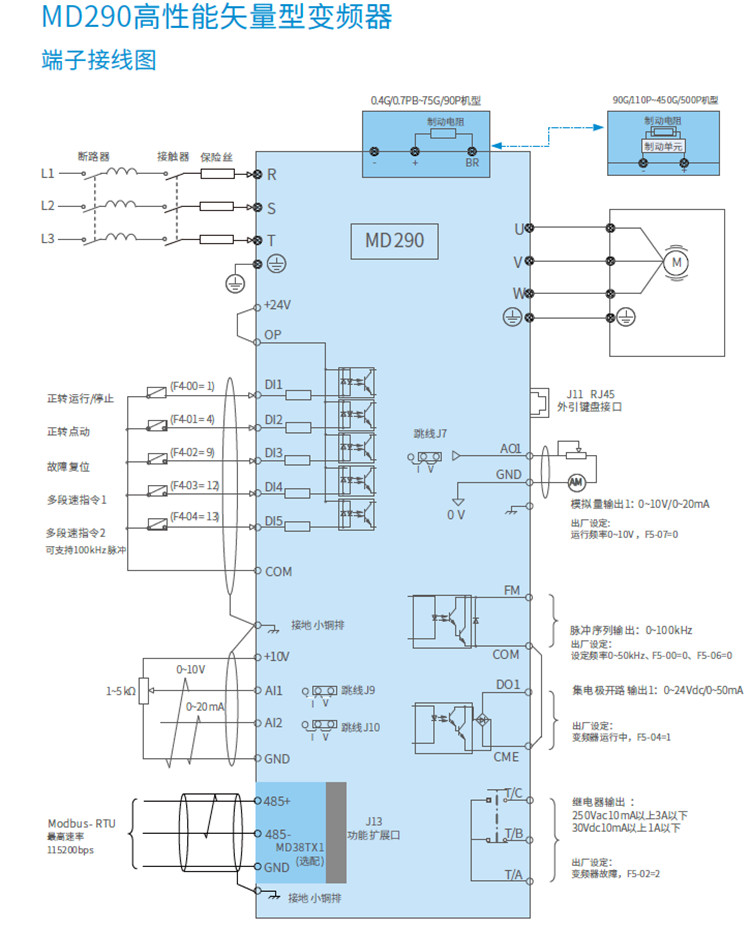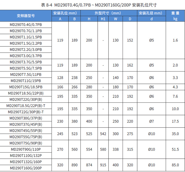 MD290-2T3.7G/5.5PB 匯川變頻器三相220V變頻器3.7KW